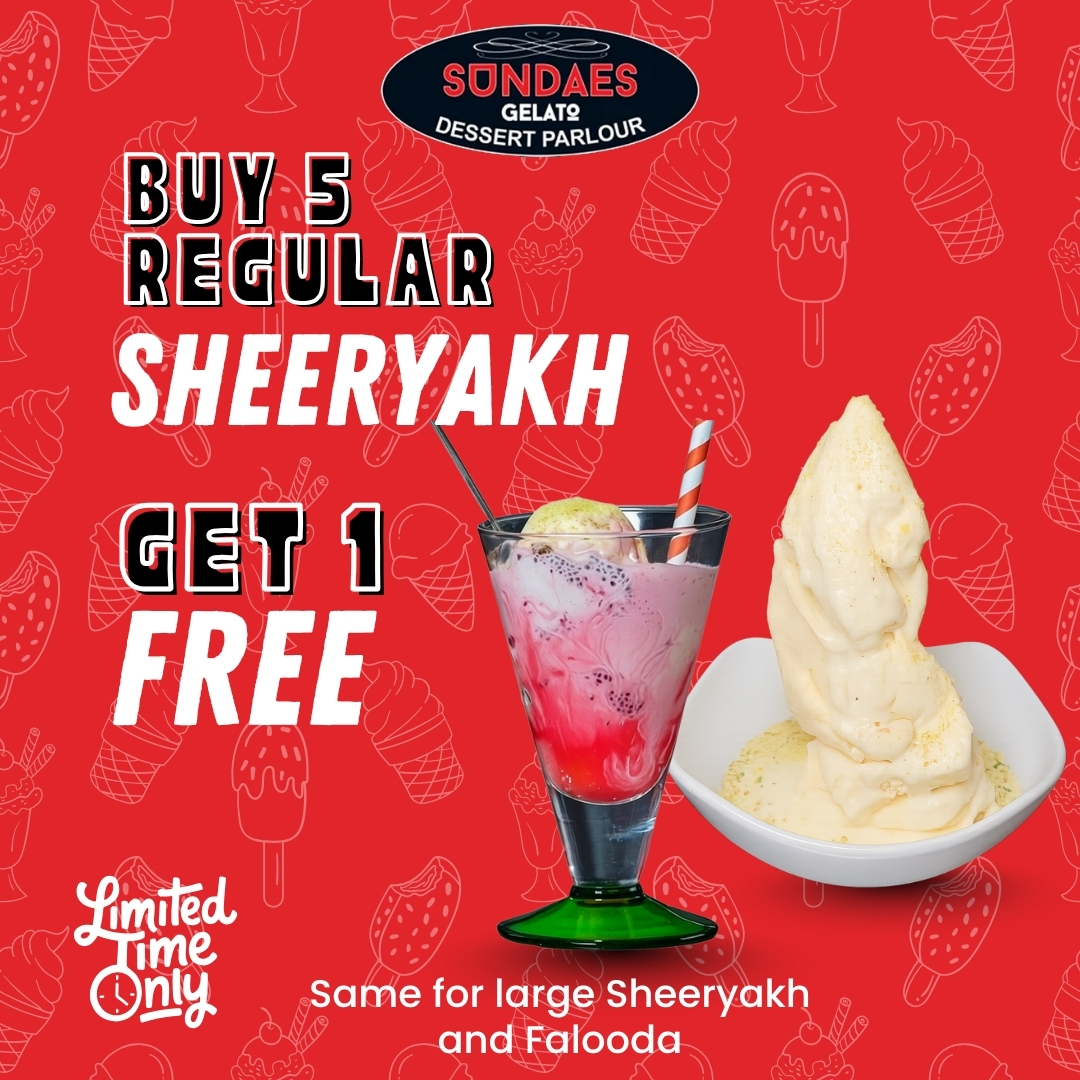 Fantastic location to enjoy Shir-e-Yakh and a wide variety of ice creams. Sundaes is also the ideal place for families to gather and enjoy delicious Ice Creams. They offer the highest-quality teas, ice creams, and other dairy food. It is highly recommended and a must-visit location!